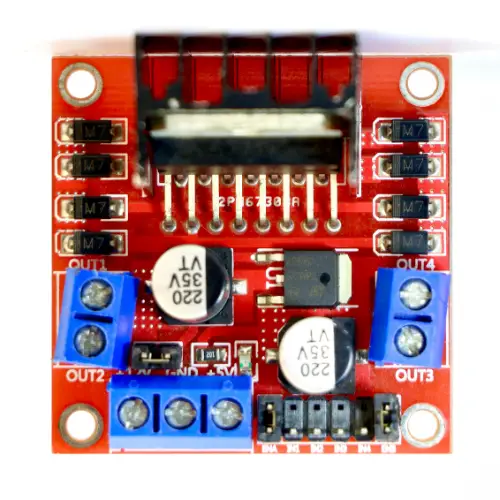 L298N : This module is based on L298N, high voltage, high current dual full bridge driver which can be used to drive a DC motor and stepper motor.