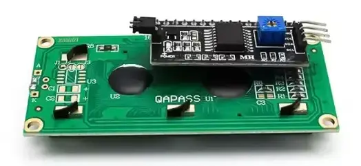 The LCD1602 with I2C interface is a 16×2 character display with a blue backlight, ideal for microcontroller projects.