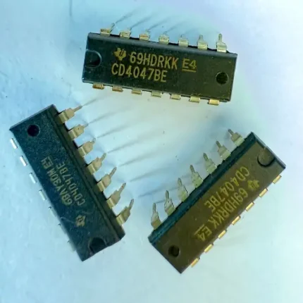 The CD4047 Monostable Astable Multivibrator IC is designed for low power consumption and versatile operation, offering both monostable (one-shot) and astable (free running) modes. It features high noise immunity and standardized symmetrical output, making it ideal for use in various applications that require reliable timing and frequency generation. In monostable mode, the IC is retriggerable with positive and negative edge triggering, while in astable mode, it generates a 50% duty cycle oscillator output.